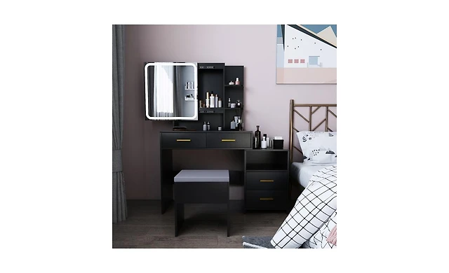 Streamdale Furniture + 37" + Wood/Glass (assuming typical vanity materials) + Led Mirror + Vanity Table with Stool