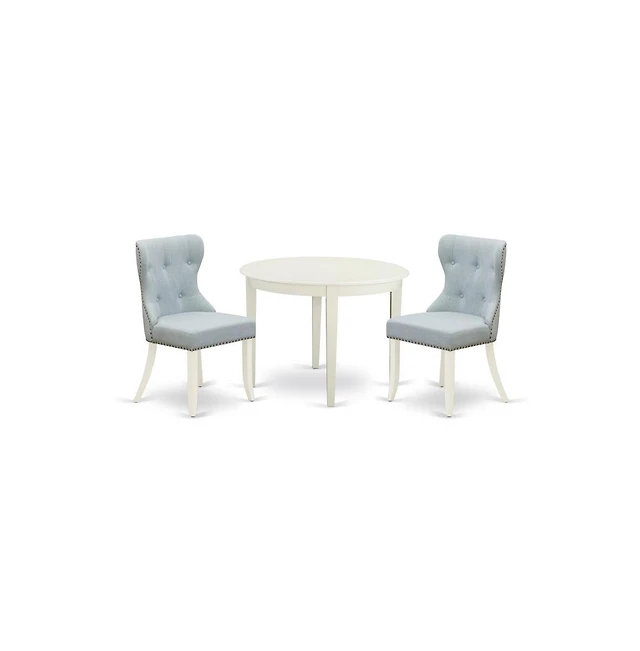 East West Furniture 3 Piece Dining Table Set - Linen White Dinner Table and 2 Linen White Kitchen Chairs with Double X-Back - Linen White Finish