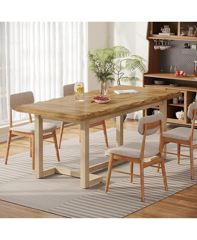 Person Outdoor Acacia Wood Dining Table with 1.96" Umbrella Hole Rectangular