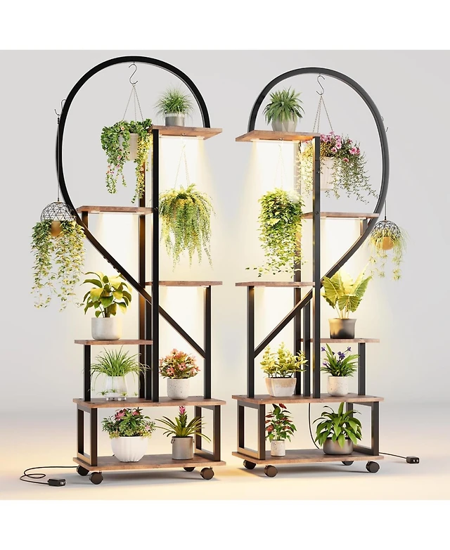gaomon 2 Pack 6 Tier Tall Plant Stand with Grow Lights Metal Indoor Plant Stand