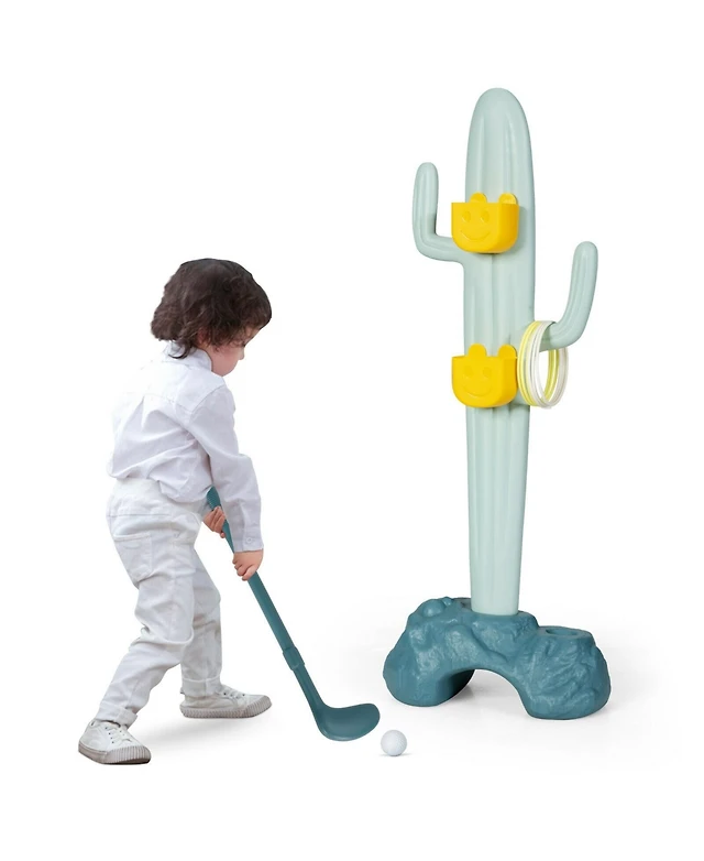 3-in-1 Cactus Toy Stand Sports Activity Center with Golf and Ring-Toss