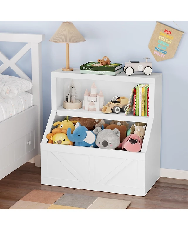 gaomon Stylish Wooden Toy Shelf, Toy Storage and Organization Shelf, Double-Layer Children's Bookshelf, Ideal for Game Rooms and Corridors, White