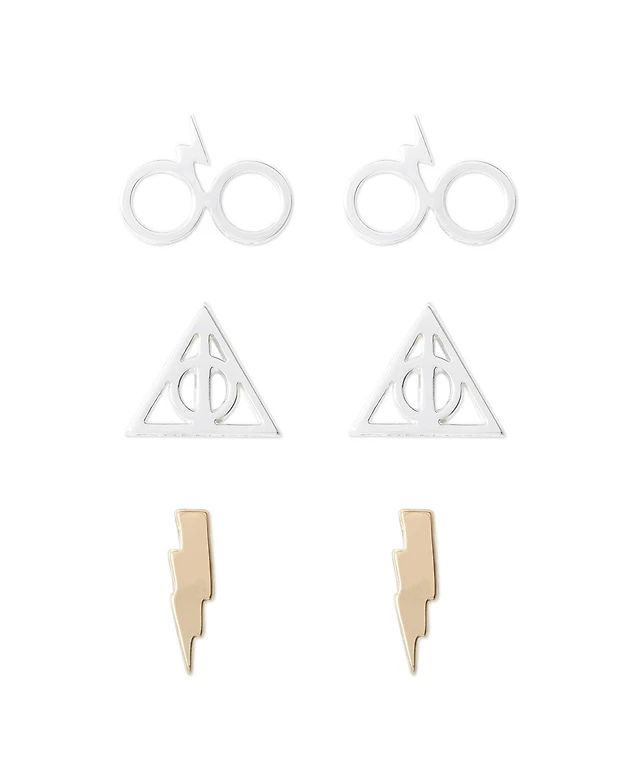 Harry Potter Stud Earrings Set, 3 Pairs - Harry Glasses, Lightning Bolt, Deathly Hallows
