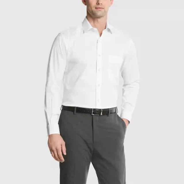 Van Heusen Fitted Everyday Defense Stain Shield Mens Modern Fit Stretch Fabric Wrinkle Free Long Sleeve Dress Shirt
