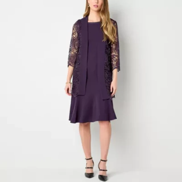 Maya Brooke Womens Beaded Lace Jacket Dress