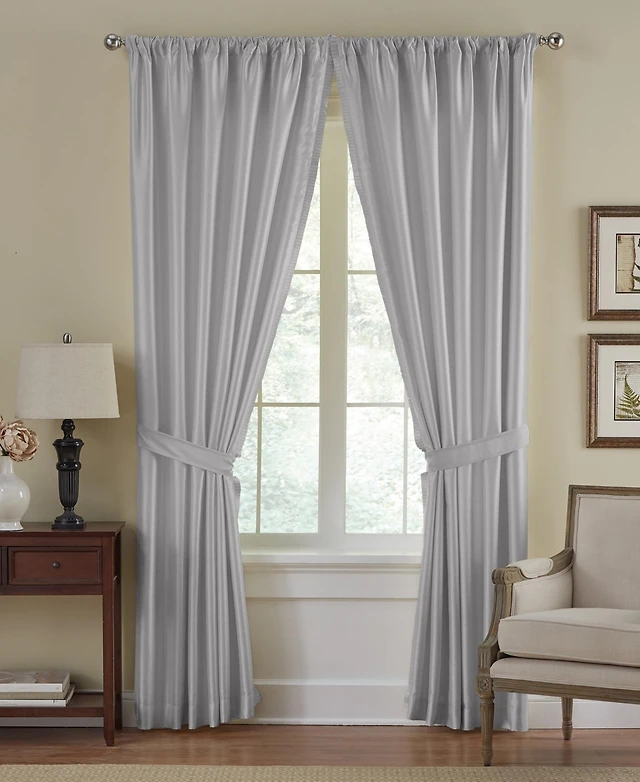 Ellis Curtain Shadow Stripe Tailored Curtain Panel Pair for Windows with Ties 80" x 45" Natural