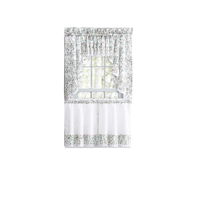 Ellis Country Floral Small Scale 1.5" Rod Pocket Floral Pattern with Ruffle Lace Edge Valance 52"x12" Multicolor