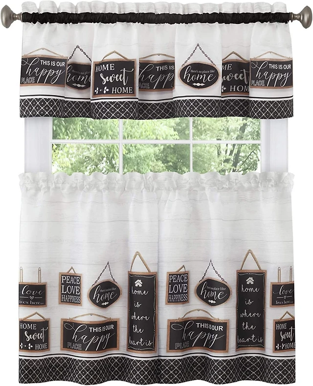 Kate Aurora Modern Farmhouse Complete 3 Piece Rod Pocket Tier and Valance Kitchen Curtain Set