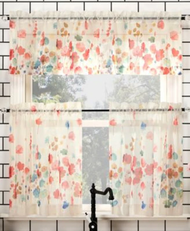 Kate Aurora Parisian Living Complete 3 Piece Lightweight Sheer Cafe Kitchen Curtain Tier & Valance Set