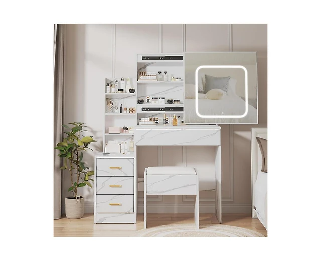 gaomon Makeup Vanity Desk with Flip Top Mirror and Lights, 47“ 3 in 1 Vanity Table with 5 Drawers