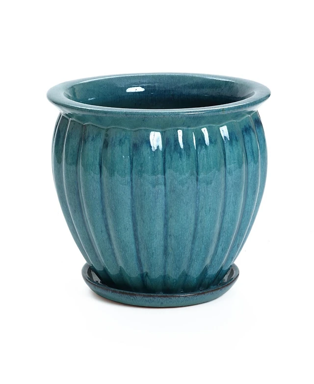 Resort High-Fired Outdoor/Indoor Glazed Uv- and Frost-Resistant Ceramic Planters with Drainage Holes - 2-Pack
