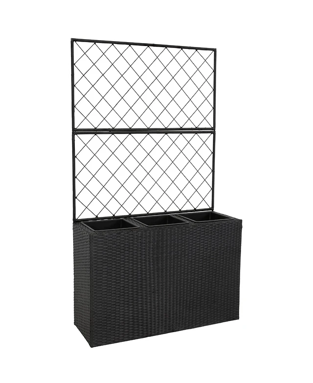3-Section Wicker Planter Box with Trellis for Indoor or Outdoor Use - Black