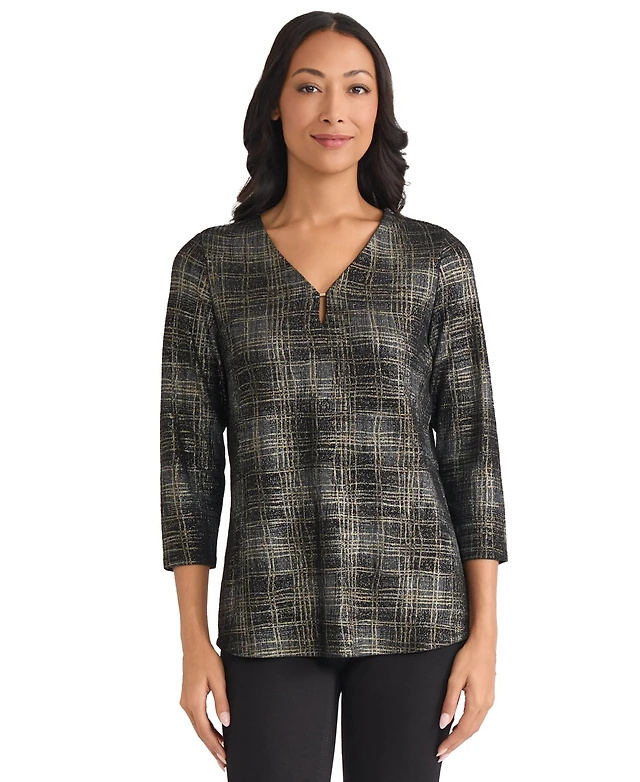Jm Collection Women's Printed 3/4 Sleeve Scoop-Neck Jacquard Top