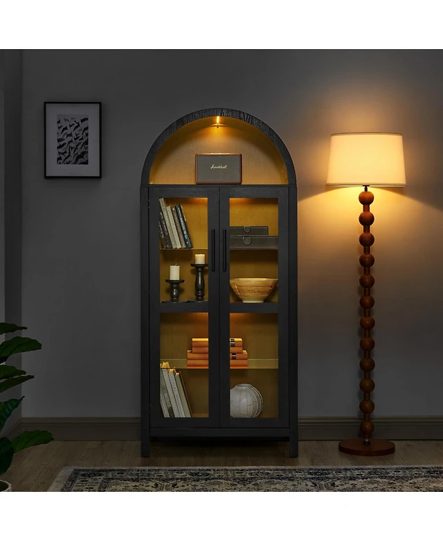 Streamdale Furniture Lighted Curio Cabinet with Glass Doors, Led Lights, Black Finish