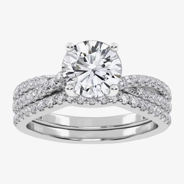 Signature By Modern Bride (H-I / Si1-Si2) Womens 2 CT. T.W. Lab Grown White Diamond 14K Gold Round Bridal Set