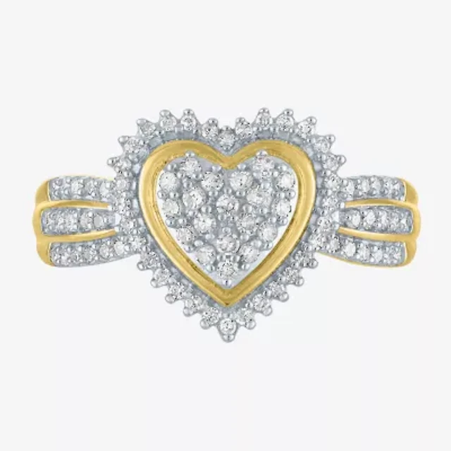 (G-H / Si2-I1) Womens 1/10 CT. T.W. Lab Grown White Diamond Sterling Silver Heart Side Stone Halo Promise Ring
