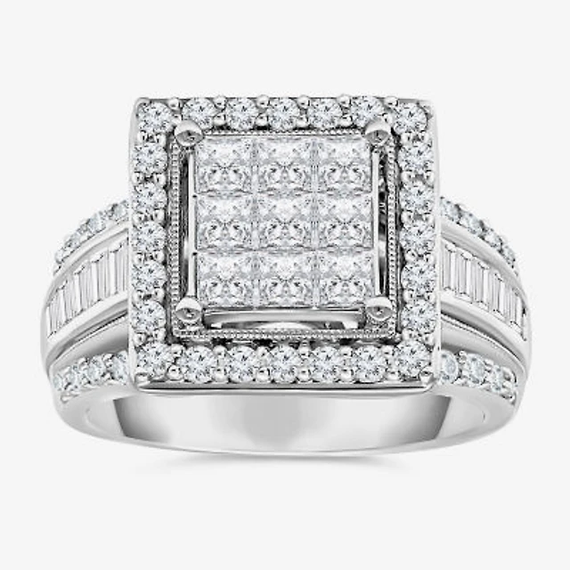 (G / I1) Womens 2 CT. T.W. Lab Grown White Diamond 14K Gold Round Side Stone Halo Bridal Set