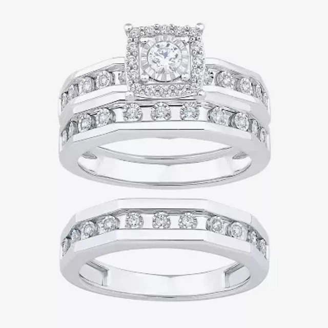 Unisex Adult 3/8 CT. T.W. Natural White Diamond 10K Gold Halo Side Stone Ring Set