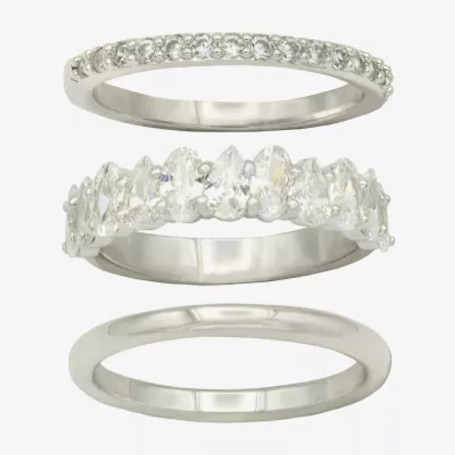 Sparkle Allure Side Stone Womens Cubic Zirconia Pure Silver Over Brass Round Engagement Ring