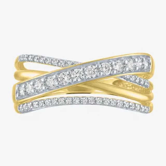 Womens 1 CT. T.W. Natural White Diamond 10K Gold Crossover Cocktail Ring