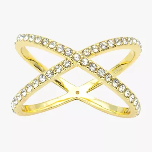 Sparkle Allure Womens 2.5MM Crystal 14K Gold Over Brass Crossover Band