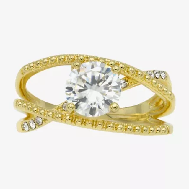 Sparkle Allure Wrap Womens 2MM Cubic Zirconia 14K Gold Over Brass Bypass Band