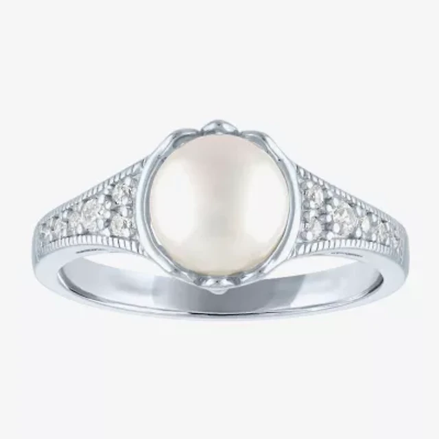 14K Gold Over Silver Cultured Freshwater Pearl & Lab-Created White Sapphire Ring