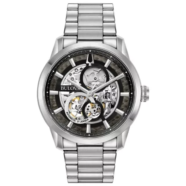 Bulova Surveyor Mens Automatic Silver Tone Stainless Steel Bracelet Watch 96a275