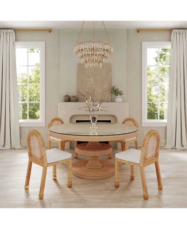 Streamdale Furniture Set of 4, Light Leather, Gold Mesh Swivel Dining Chairs