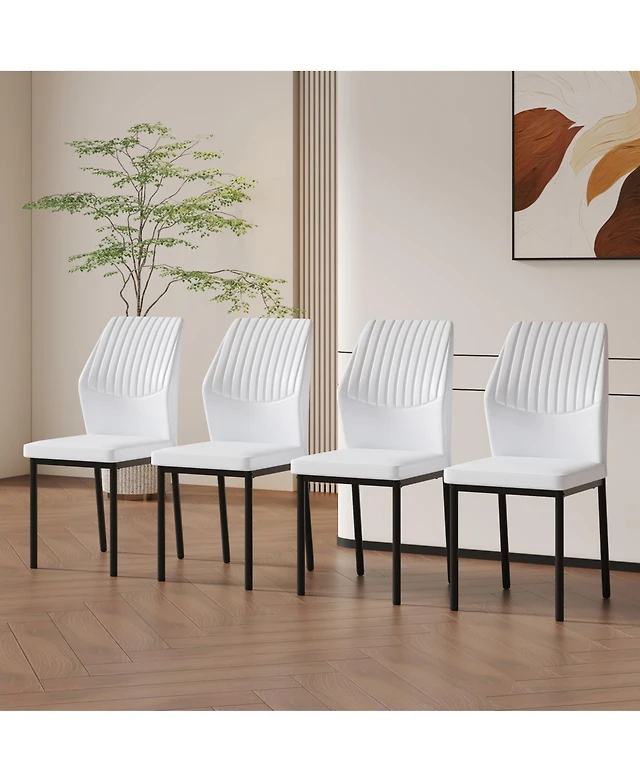 Streamdale Furniture Luxury White Linen Dining Chairs (Set of 4) - Black Metal Legs