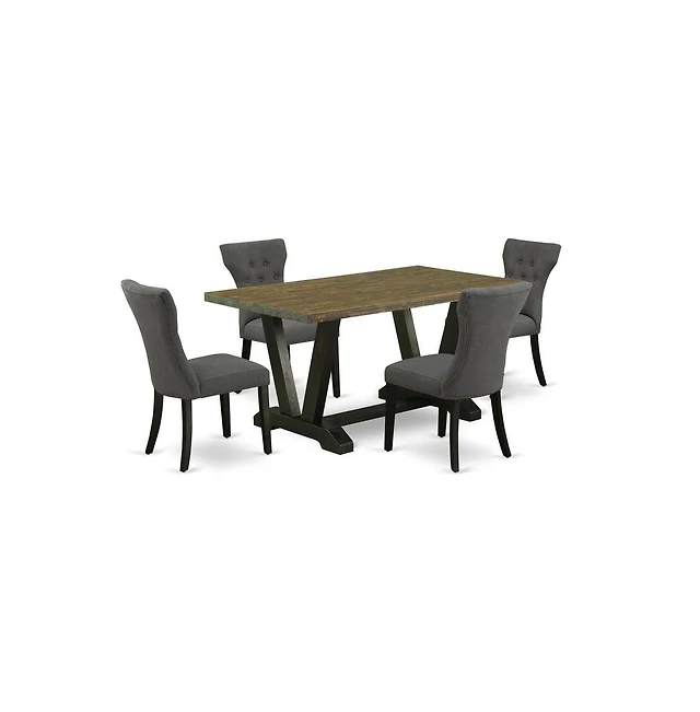 East West Furniture 5-Pc Dining room Set Included 4 kitchen parson chairs Upholstered Nails Head Seat and High Button Tufted Chair Back and Rectangula