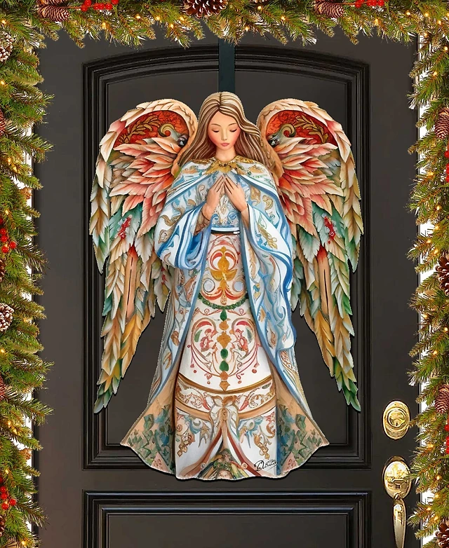 Designocracy Elegant Angel of Hope Christmas Wooden Door Decor Door Hanger G. DeBrekht