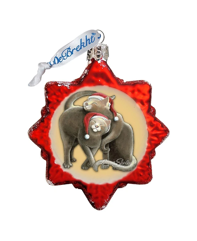 G.DeBrekht Christmas Cuddling Kitties Hand Painted Glass Ornament