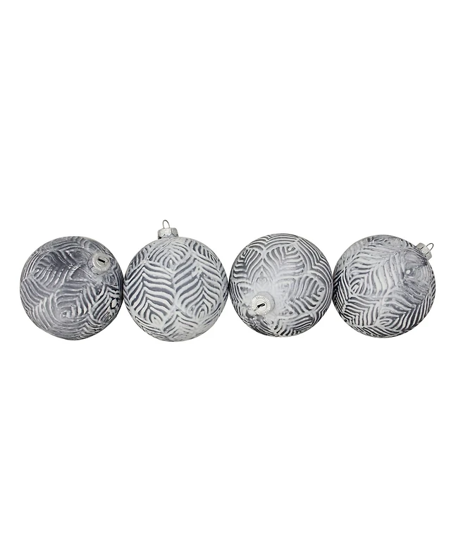 Northlight 4ct White and Gray Diamond Pattern Christmas Glass Ball Ornaments 4" 100mm
