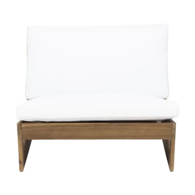 Gymax Patio Acacia Wood Conversation Companion Bench Loveseat Chair with Side Table