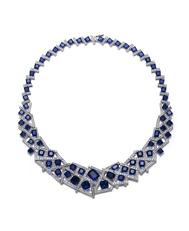 LuvMyJewelry Sterling Silver Deep Blue Sea Design Blue Sapphire, White Topaz Gemstone Tag Chain