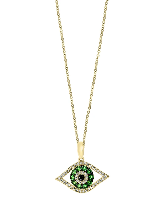 Effy Tsavorite (1/5 ct. t.w.) & Diamond (1/8 ct. t.w.) Evil Eye 18" Pendant Necklace in 14k Gold