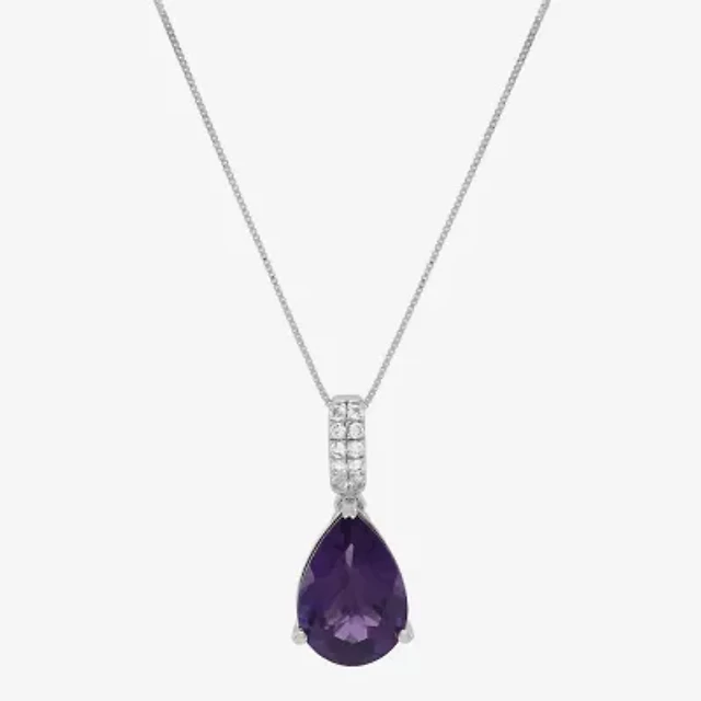 Womens Lab Created Purple Amethyst Sterling Silver Heart 18 Inch Pendant Necklace
