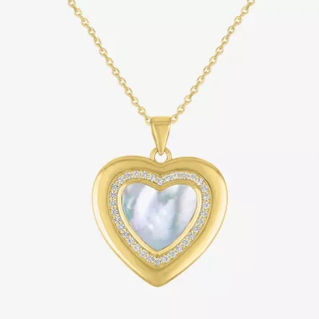Womens Lab Created White Sapphire Sterling Silver Heart 18 Inch Pendant Necklace