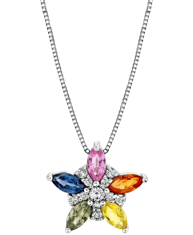 Multi-Sapphire (1-1/6 ct. t.w.) & Diamond (1/10 ct. t.w.) Star Pendant in 14k White Gold