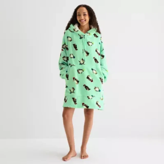 Sleep Chic Womens Fleece Hooded Long Sleeve Nightgown