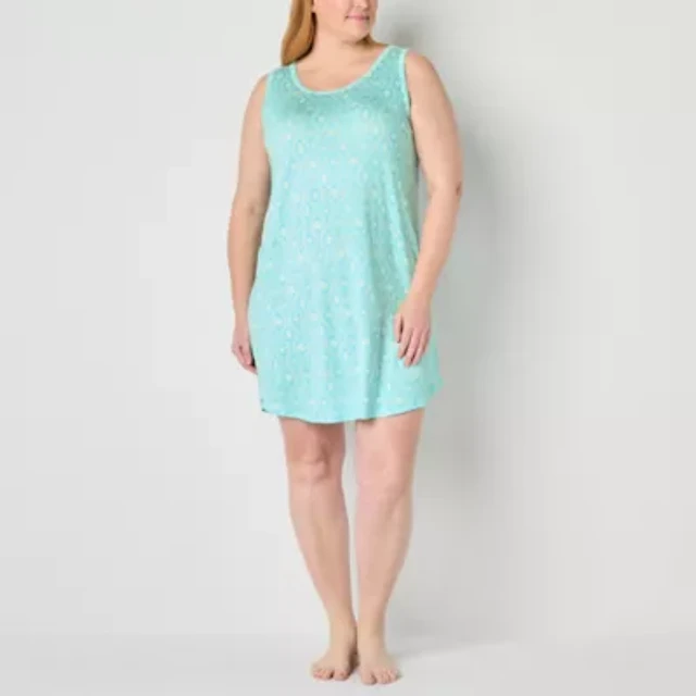 Liz Claiborne Cool and Calm Womens U Neck Sleeveless Plus Nightshirt
