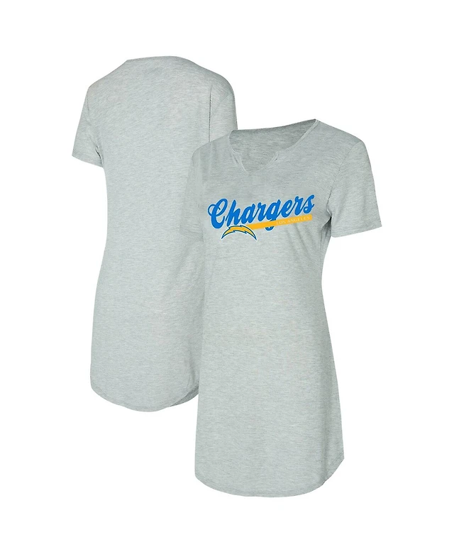 Women's Concepts Sport Powder Blue, Navy Los Angeles Chargers Mainstay Flannel Full-Button Long Sleeve Nightshirt