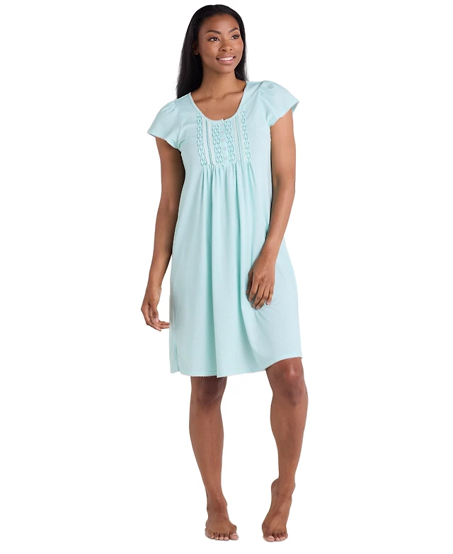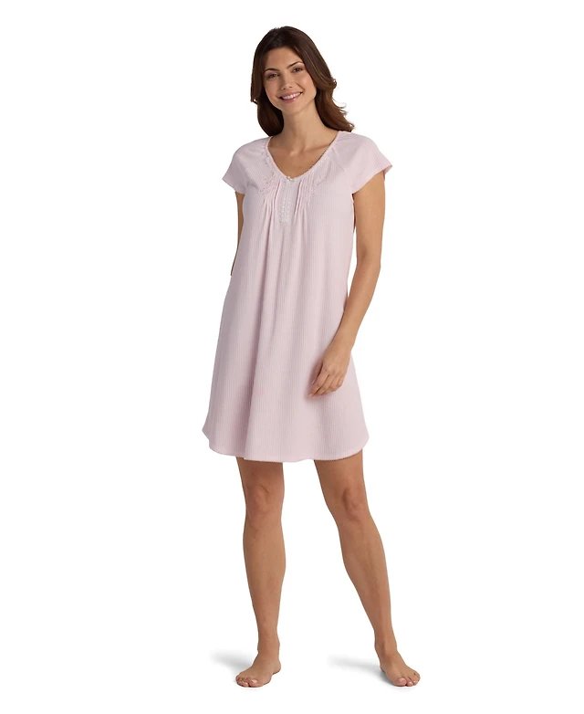 Miss Elaine Women's Embroidered Waffle-Knit Nightgown