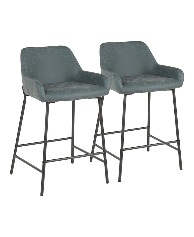26 Inch Counter Height Stools Set of 2, Armless Industrial Faux Leather with Metal Legs-Maison Boucle