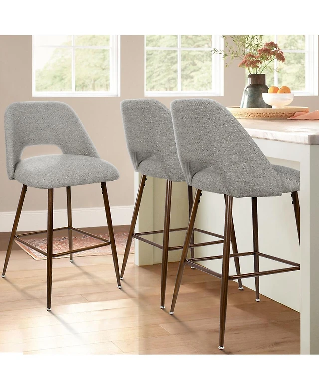 Kamryn Mid Century Modern Fabric Barstools Set of 2, Light Grey