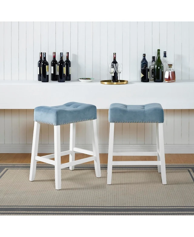 Streamdale Furniture Velvet Barstools with Button Tufted Backrest and Chrome Trim (Set Of 2)
