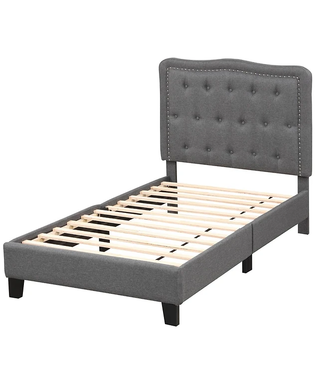 Gouun Heavy Duty Upholstered Bed Frame With Rivet Headboard Twin Size