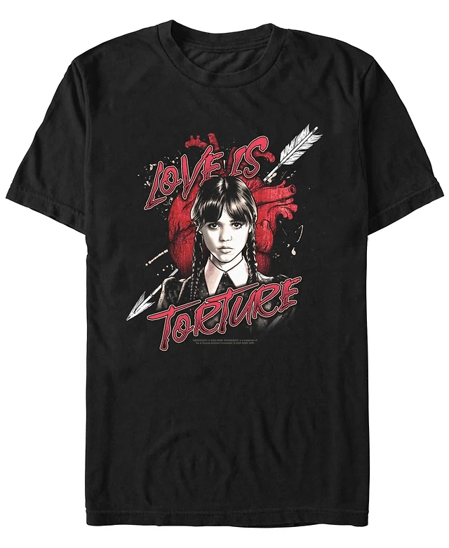 Fifth Sun Men's Wednesday Addams Love is Torture Short Sleeve T-Shirt