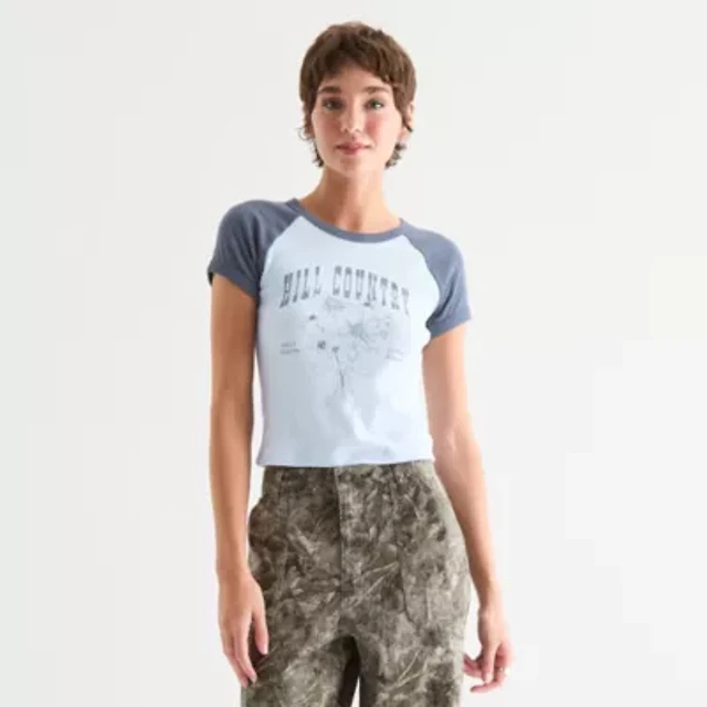 Arizona Womens Juniors V Neck Short Sleeve Boxy Fit Graphic T-Shirt